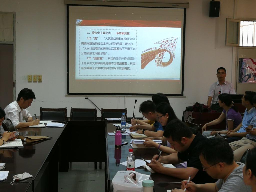 深入学习领会习近平总书记关于做好党的十九大精神宣讲工作的重要指示精神,学习贯彻党的十九大精神和新党章,推动党的十九大精神和新党章深入人心、落地生根。宣讲会上,陈书记围绕十九大报告的主题以数字形式解析十九大会议主要精神,十九大与我们工作的密切关系,撸起袖子加油干十九大的心得体会等方面开展宣讲,整场宣讲内容和学院工作紧密结合,内容丰富。