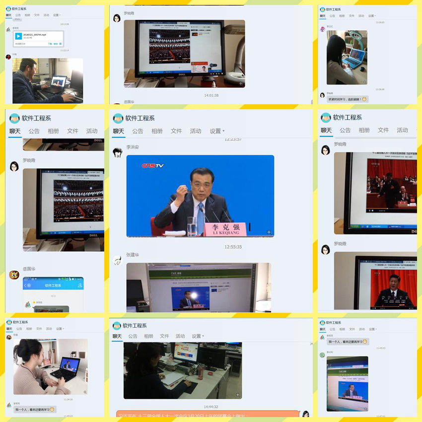 3月21日下午软件工程系、教工第三党支部创新学习形式利用软件工程系工作QQ群,采用“网络视频”的形式学习研讨两会精神。