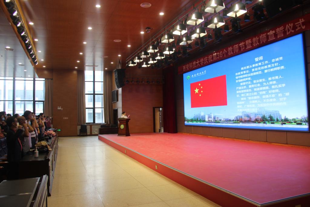 9月10日下午,西安科技大学计算机科学与技术学院在临潼校区骊山校园煤炭科技中心举行庆祝第36个教师节表彰大会暨2020级新生入学典礼。学院党委书记冯爱玲,院长李占利,党委副书记陈伟伯,副院长马天、于振华出席大会。各系部主任、教工党支部书记、教师代表、全体行政管理干部、学工干部,2020级全体本科、研究生新生参加大会。陈伟伯主持大会。