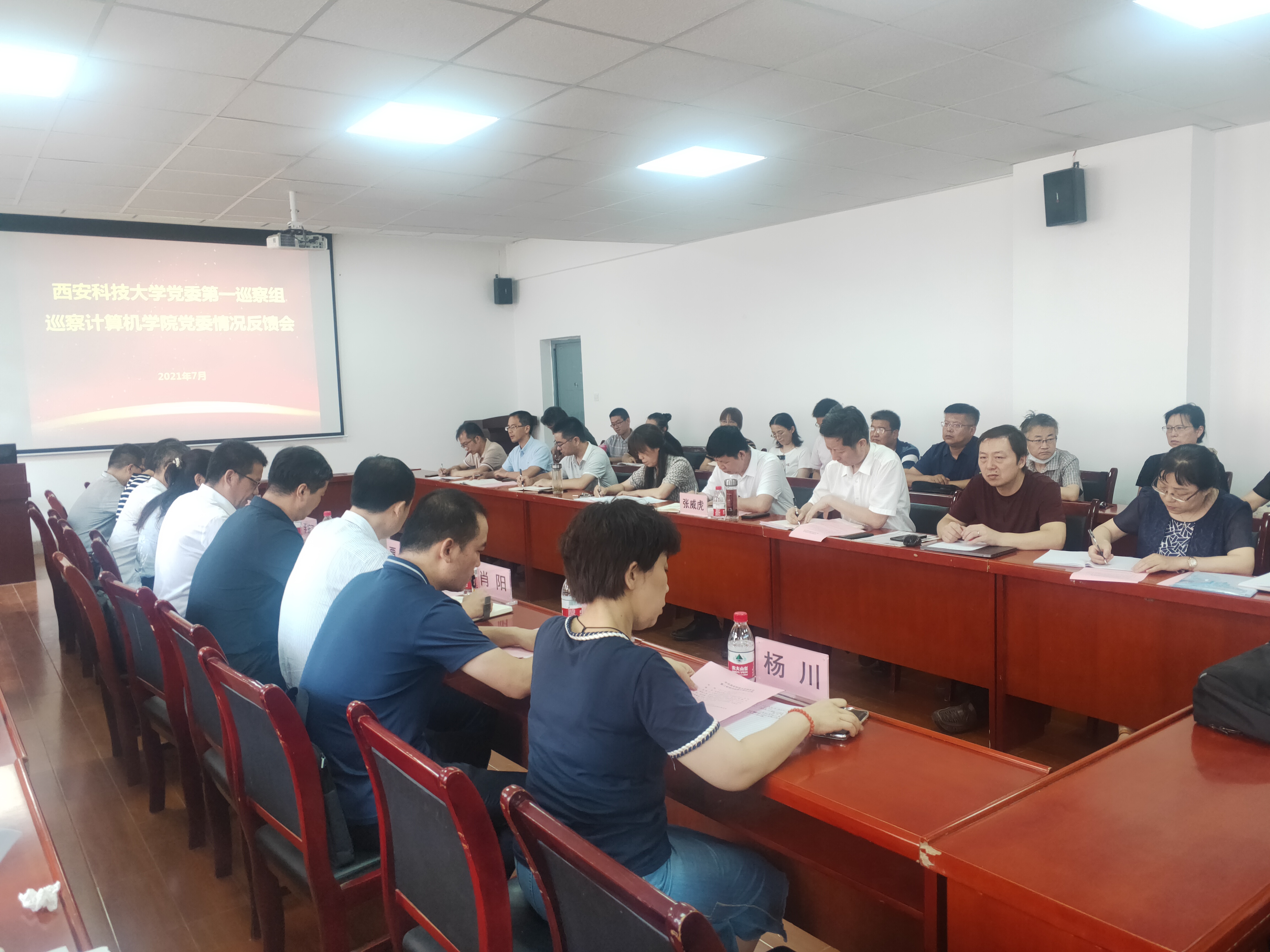 7月17日,在临潼校区15号教学楼323会议室,计算机学院召开学校党委第二轮校内巡察工作反馈会。副校长张威虎、巡察办、学校巡察组全体人员、计算机学院党政班子成员、纪委委员、工会委员、副高及以上专业技术人员、党支部书记、系主任、师生代表等参加会议。