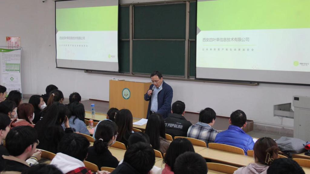 为进一步帮助学生了解网络安全知识、就业前景和行业发展趋势,3月22日下午,计算机学院在骊山校园9105教室举行校企交流暨学涯规划分享会,西安四叶草信息技术有限公司市场部总监孙宇等一行3人,2020级学生辅导员王浩,学院网络安全协会全体成员,2020级全体本科生参加会议。会议由党委副书记郭胜忠主持。