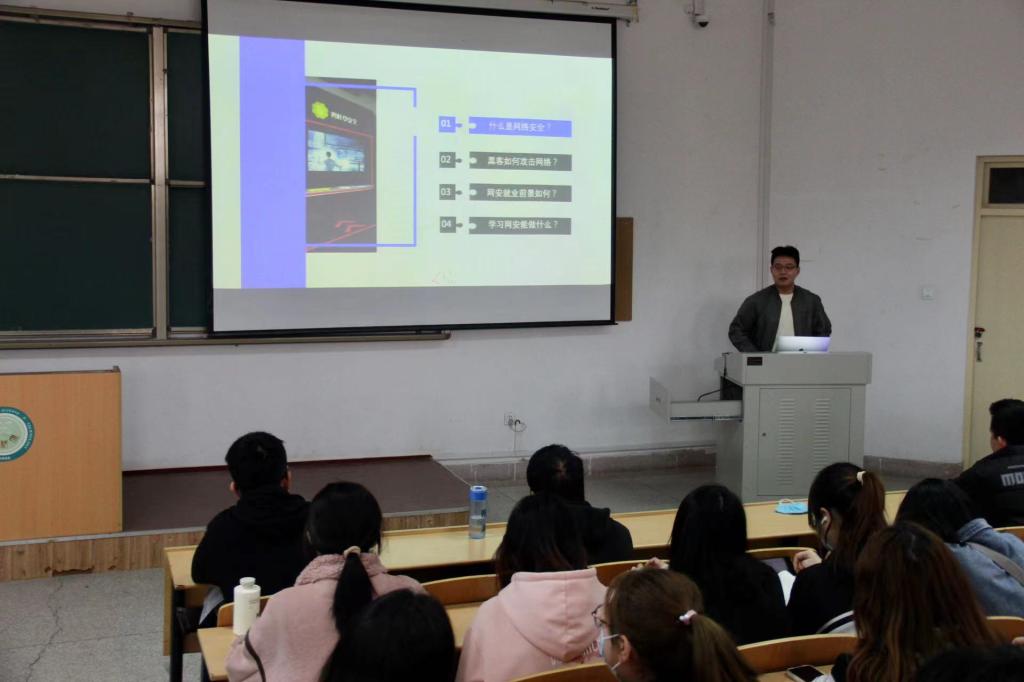 会上,孙宇简要介绍了企业基本概况,对现阶段人才需求情况进行了说明;公司高级攻防演练工程师凯文从“什么是网络安全”“黑客如何攻击网络”“网安就业前景如何”和“学习网安能做什么”四个方面进行了详细讲解,通过研究数据展示了网络安全领域的发展趋势以及人才缺口,进一步介绍了网安发展前景和网安专业学习方法,鼓励同学们努力学习专业知识,为网络安全行业贡献力量。