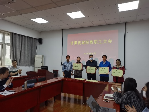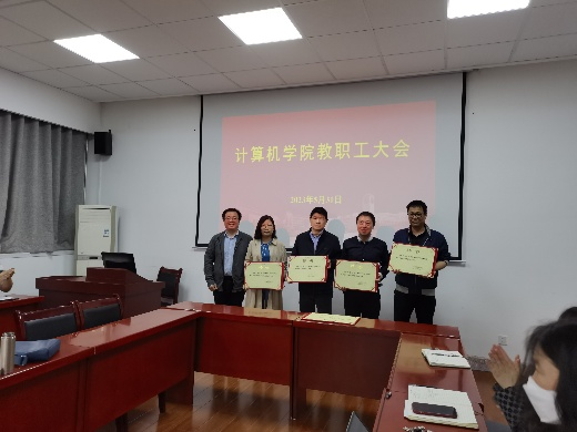 会上,副院长金浩宣读了学院两个聘任文件《关于聘任张小艳等同志为计算机学院教学督导教师的通知》《公布计算机学院教学创新团队的通知》,于振华、金浩分别为教学督导和教学团队带头人颁发了聘书。