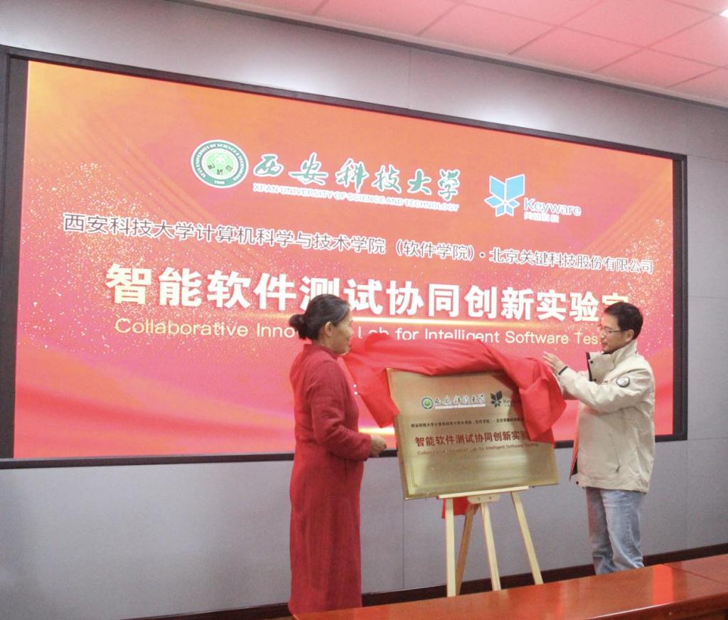 11月15日上午,智能软件测试协同创新实验室成立仪式在计算机学院会议室隆重举行,该实验室由西安科技大学计算机科学与技术学院(软件学院)与北京关键科技股份有限公司共同成立。工业和信息化部人才交流中心人才发展处程宇处长、关键科技董事长焦华春女士、我校副校长黄英维等领导和嘉宾出席会议,教务处、对外联络与合作处负责人、计算机学院班子成员和相关教师与学生代表参加会议。