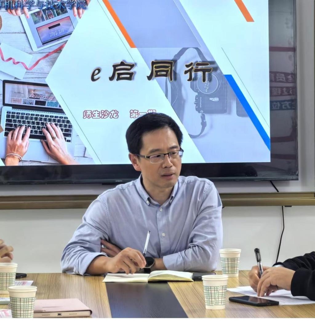 10月12日下午,计算机科学与技术学院在8、9号学生公寓“一站式”学生社区举办第一期“e启同行”师生沙龙,计算机学院院长于振华教授担任主讲,毕业班辅导员、21、22级本科生20余人参与聆听,活动由计算机学院党委副书记郭胜忠主持。