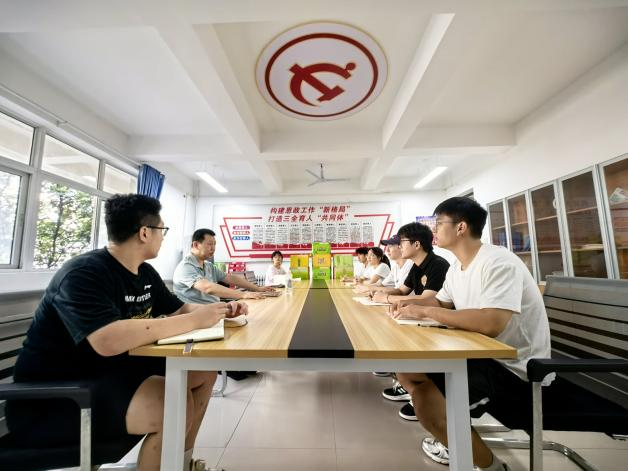 在学院教学楼,李绥波慰问了正为科研团队组会做准备的师生们。尽管室外暑气蒸腾,会议室里师生却丝毫不受影响,个个劲头十足:有的俯身案头核对数据,笔尖在记录本上飞快游走;有的围站在电脑旁调试设备,时不时低声交流几句;有的对着电脑屏幕修改方案,手指在键盘上敲击得噼啪作响……大家分工明确,有条不紊地做着组会前的最后冲刺。