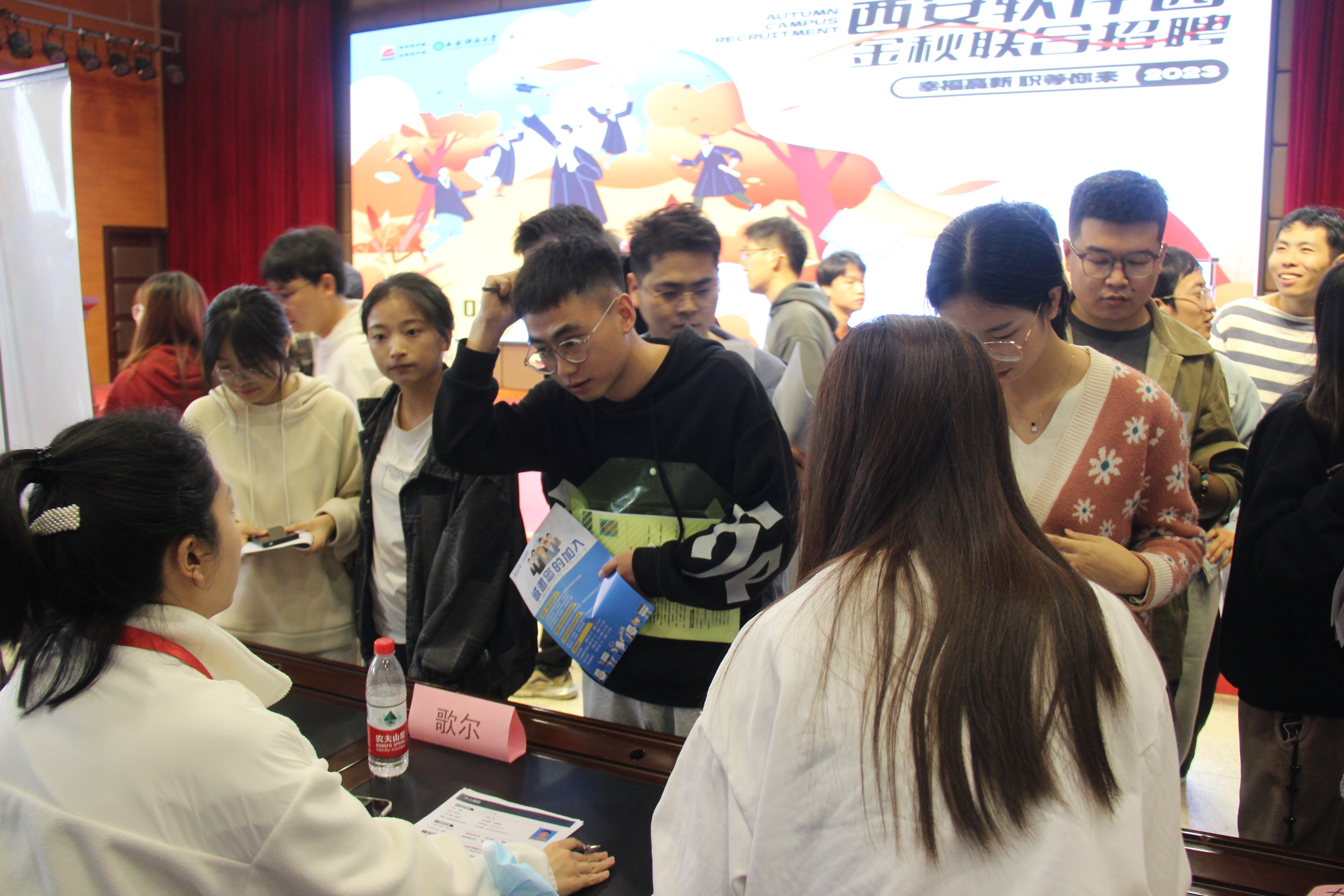 11月1日下午,计算机学院与学校就业中心、西安软件园、西安工程大学计算机学院共同举办的“幸福高新 职等你来”计算机类秋季专场招聘会在骊山校园煤科楼一楼报告厅举行。