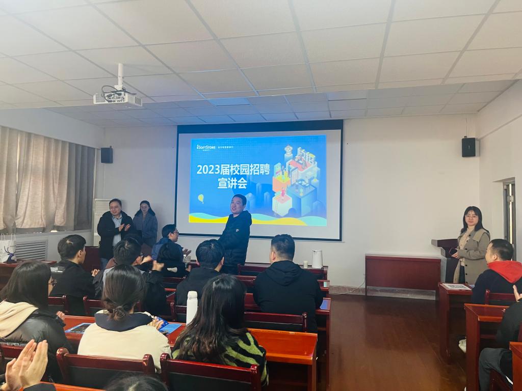 会上,软通动力校园招聘专员介绍了企业概况、企业文化、主营业务,对招聘需求、薪酬待遇和晋升发展等做了说明,对毕业生提出的问题给予详细解答。