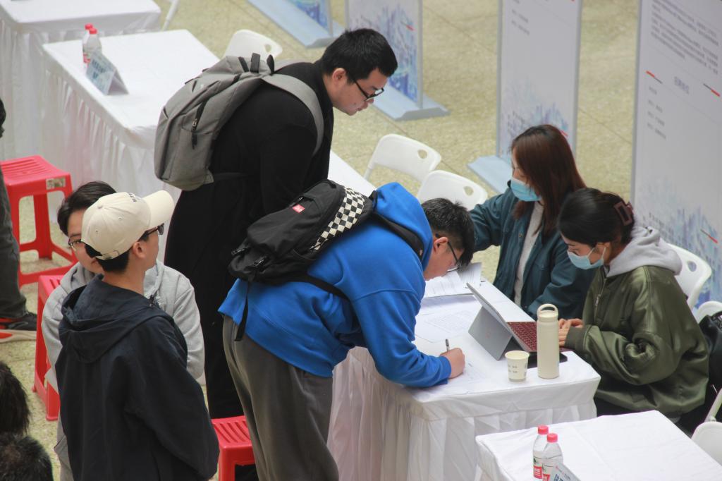 开幕式结束后,双选会在3教一楼大厅正式开始,28家华为ICT人才联盟企业进行现场招聘。参加应聘的2023届毕业生计科专业杨倩表示,将会树立正确的就业观和择业观,利用好学校、学院为学生搭建的就业平台,找到适合自己发展的平台。