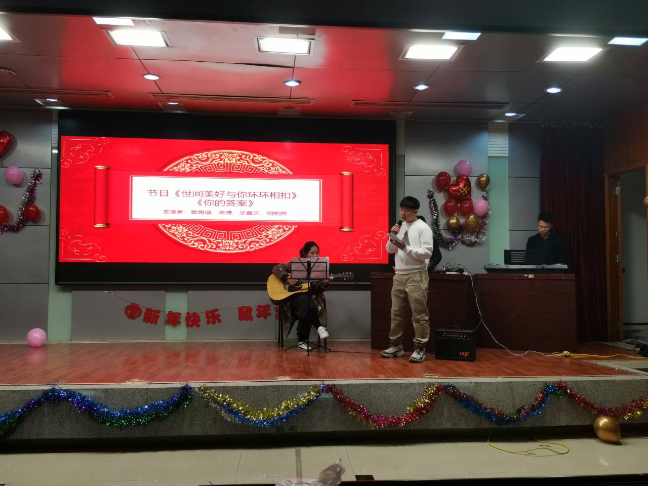为进一步丰富校园文化生活,缓解同学们备战考试带来的疲劳,提高学生生活情趣和艺术创造力,20191229日晚上7点,西安科技大学计算机学院研究生会在图书馆二楼报告厅举办“不忘初心,砥砺前行”元旦晚会,2018级、2019级研究生参加了晚会,辅导员范文静出席并发表新年祝语。