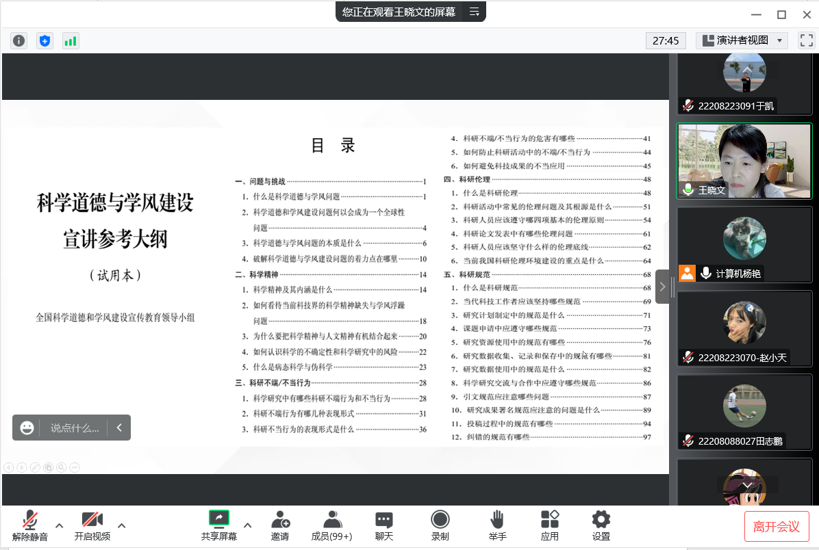 10月28日,西安科技大学王晓文老师为星空体育中国官方网站2022级研究生在线做了题为《学术规范与学术道德建设》的学术报告。报告会由计算机科学与技术学院主办,杨艳主持,全校160余名研究生及教师聆听了报告。