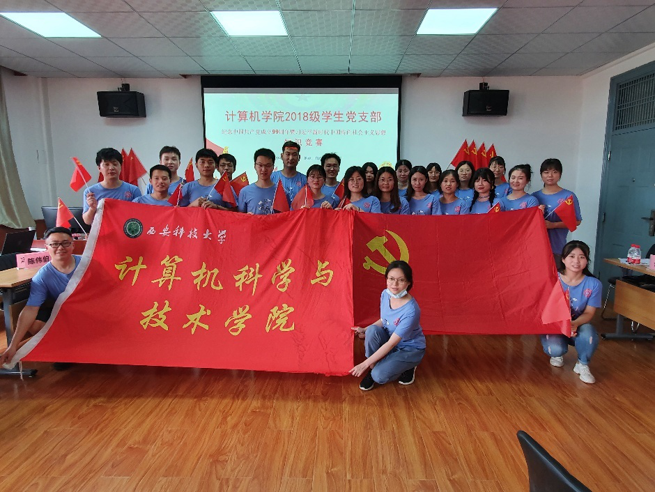 2020年是中国共产党成立99周年,为隆重庆祝党的华诞,铭记党的历史,充分展示学生党员的爱国主义热情以及昂扬的精神面貌,7月1日,计算机科学与技术学院2018级学生党支部在临潼校区15教512室开展庆祝建党99周年知识竞赛活动,活动由2018级学生党支部书记李宇绒主持,计算机学院党委书记冯爱玲、副书记陈伟伯、副院长马天及2018级学生党支部全体党员参加此次活动。