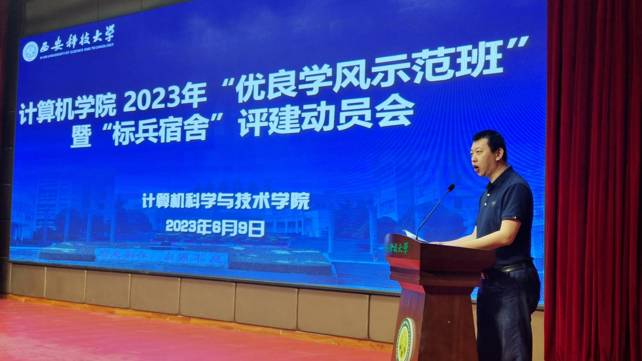 6月9日,计算机学院在临潼校区骊山校园煤炭科技楼一楼报告厅召开2023年“优良学风示范班”暨“标兵宿舍”评建动员会。学院党委书记李绥波、副院长金浩、教师代表、全体学工干部,各年级班长、团支书,一至三年级全体学生宿舍舍长,2022级全体学生参加了本次会议,会议由学院党委副书记郭胜忠主持。