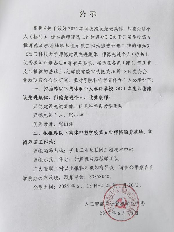 2025年师德建设先进集体、师德先进个人、优秀教师、第五批师德涵养基地、师德示范工作站推荐对象公示