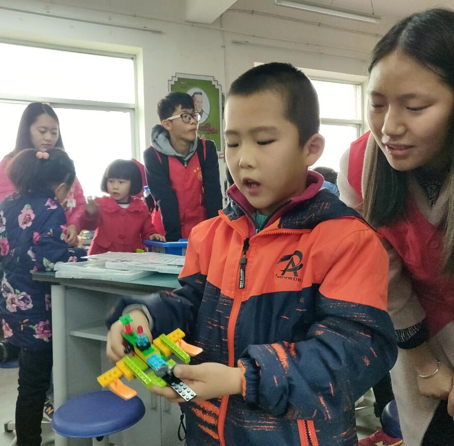最后,大学生志愿者带领第一期少儿编程班学员在科技实验室进行了体验活动,孩子们通过通过组装、搭建、运行机器人,进一步激发了学习编程的兴趣。从下周开始,大学生志愿者将在小寨小学开展每两周一次的少儿编程教育活动课。